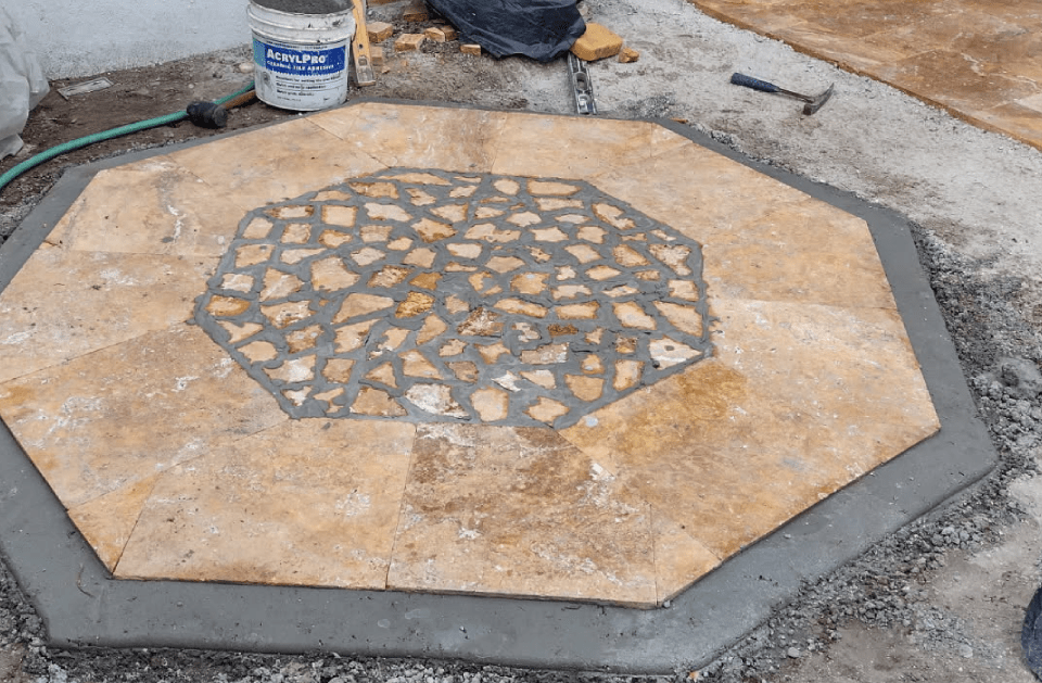 Custom stamped concrete installation enhances patios, walkways, and driveways with durable decorative finishes.